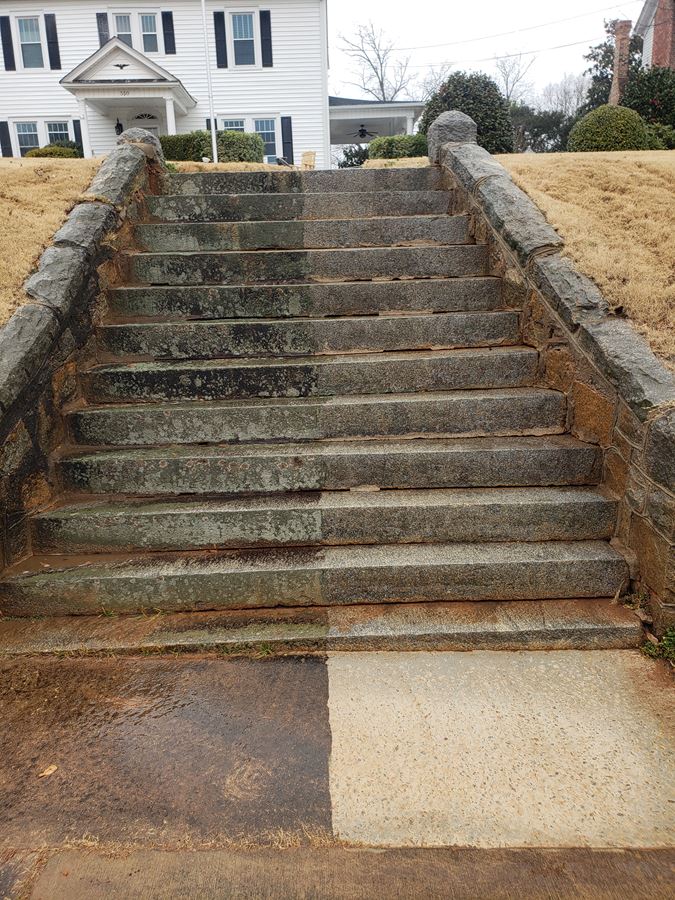 This client in Laurens, SC took full advantage of our Pressure Washing, Soft Washing, and Gutter Cleaning services. This beautiful home sits in the center of town on main street. Recently purchase, the new owner was ready to improve there curb appeal. We started with the gutter cleaning to remove debris and flush the down spouts and underground drainage system. We Soft Washed the exterior of the home to remove all organic matter. Then we finished up with Pressure Washing the sidewalk, stairs, & driveway.